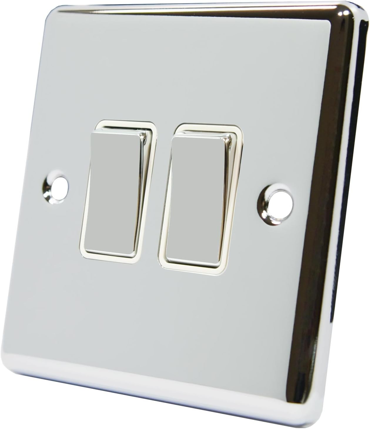 Light Switch 2 Gang Polished Chrome Classic White Insert Metal Rocker Switches 10a Double 2 Way Amazon Com