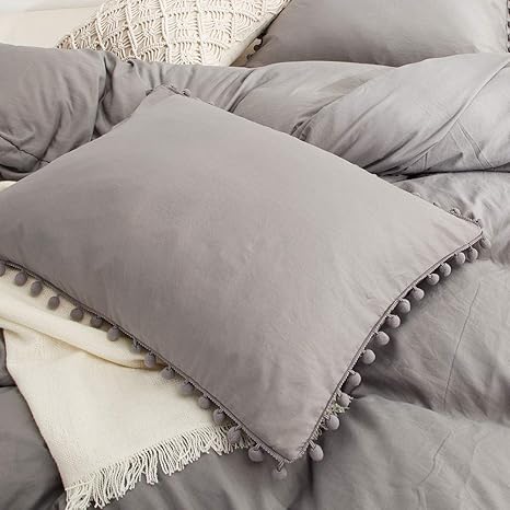 Amazon Com Grey Pom Poms Pillow Case Light Grey Pillowcases Set Of 2 100 Washed Microfiber Gray Ball Fringe Pillow Case King 2 Pack King Light Grey Kitchen Dining