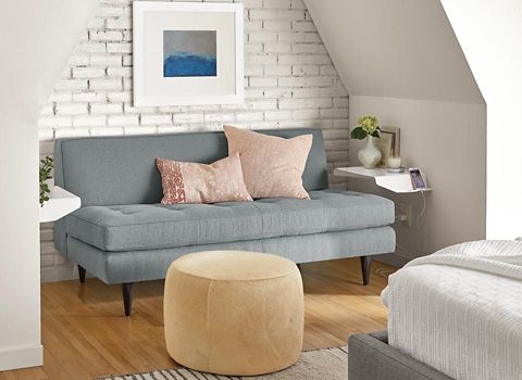 Tiny Living Is Trending. Using a sleeper sofa futon or sofa bed you can have a living room and bedroom in the same room no walls required. Small spaces big style.
