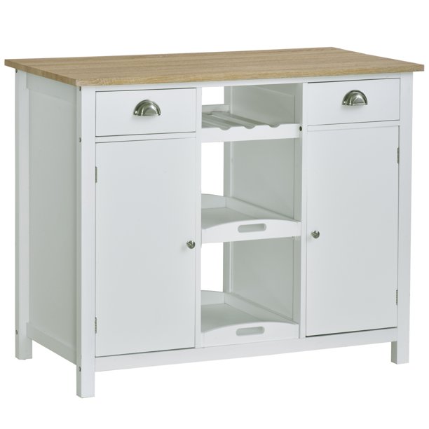 Homcom Wooden Storage Table Console Table With Storage Shelf Wine Rack 2 Drawers And 2 Cabinets White Oak Walmart Com Walmart Com