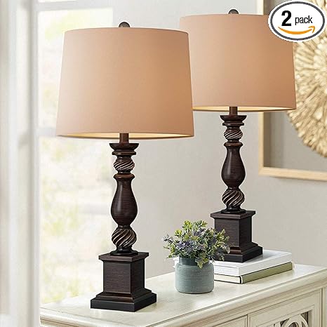 Table Lamp Set Of 2 For Bedroom Or Living Room 27 5 In High Royal Bronze Finish Large Bedside Reading Dining Kitchen Nightstand Traditional Table Lamps Bronze Table Lamp Amazon Com