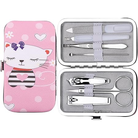 Amazon Com Kids Manicure Set Longmiao Nail Clippers Set Stainless Steel Personal Manicure Pedicure Grooming Kit 7 In 1 For Children With Cat Printed Case Beauty
