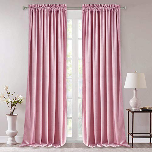 Amazon Com Ryb Home Velvet Curtains 84 Inches Soft Velvet Drapes Sunlight Block Window Treatment Sets Luxury Home Decor Energy Efficient Room Darkening Drapery Wide 52 X Long 84 Blush Pink 2