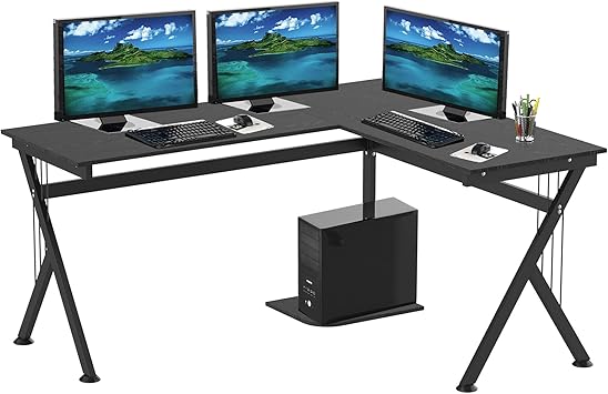 Amazon Com Homcom 61 Inch Modern Reversible L Shaped Home Office Desk Computer Laptop Table Gaming Desk Corner Workstation With Cpu Stand Space Saving Black Furniture Decor