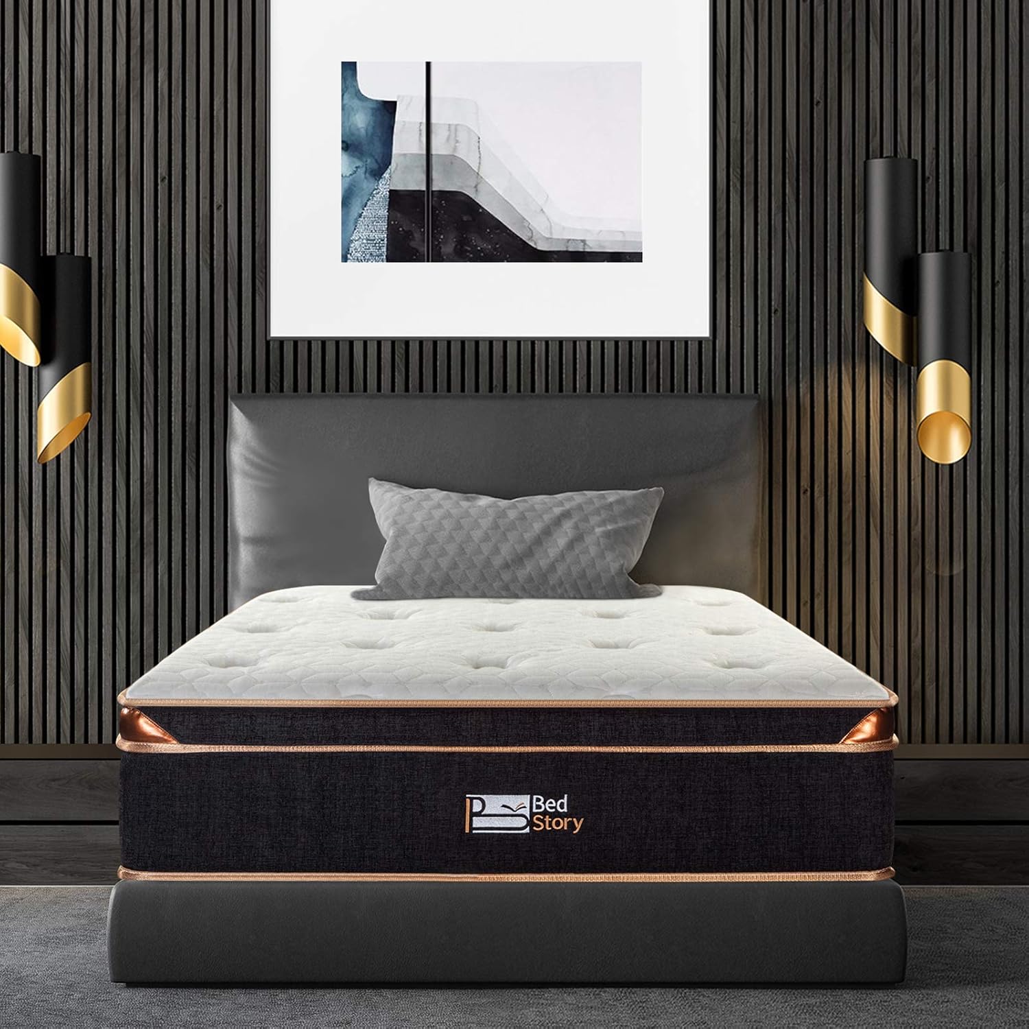 Amazon Com Bedstory Twin Mattress Hybrid Mattress 12 Inch Twin Size Medium Firm In A Box Gel Infused Memory Foam Pocket Spring Coil Mattress Single Bed Mattress Euro Top Certipur Us Certified Black