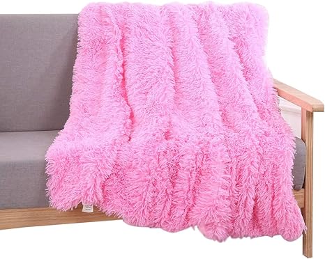 Amazon Com Yousa Super Soft Long Shaggy Throw Blanket Fluffy Faux Fur Blankets Polyester Sherpa Backing Throws 51 X63 Pink Kitchen Dining