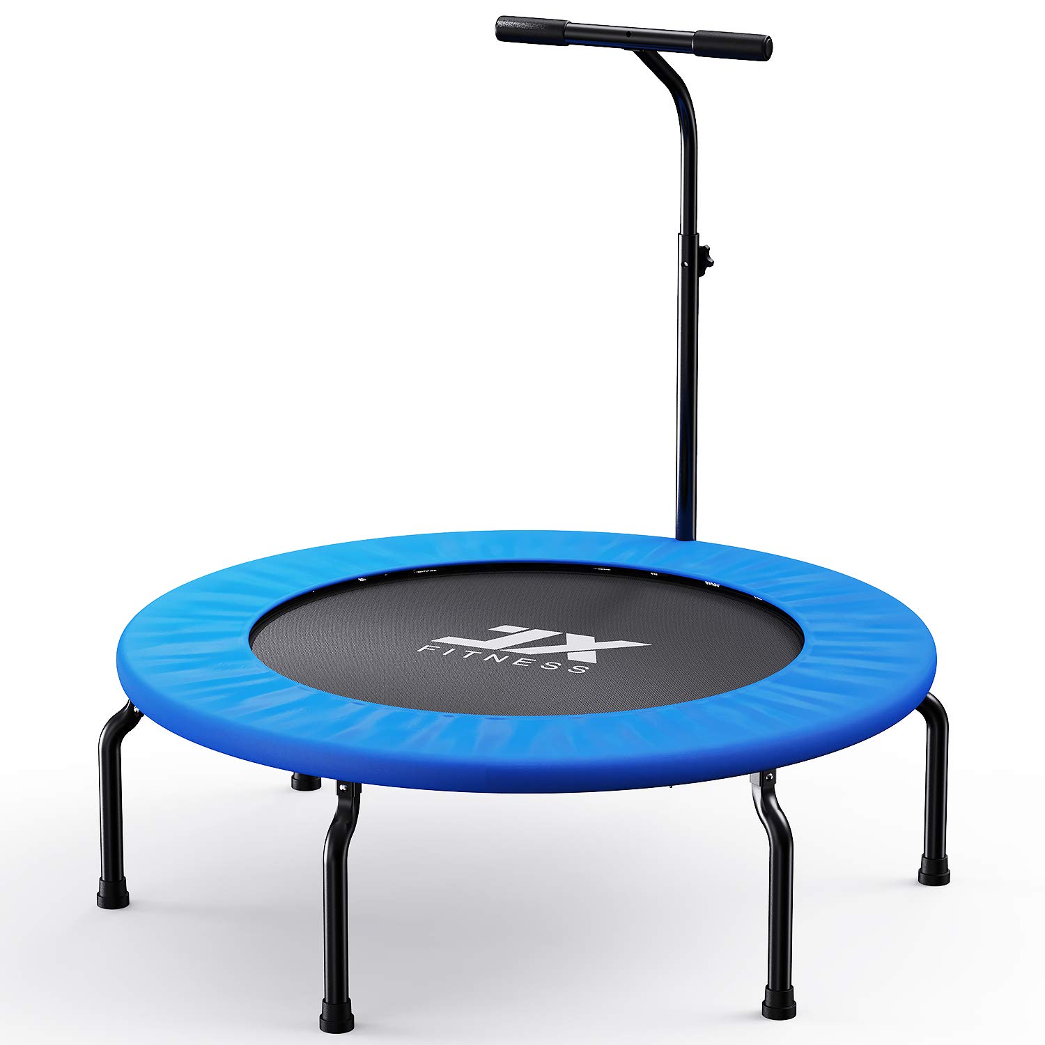 Best Folding Trampoline of 2021. Femor Fitness TrampolineSmart Foldable Trampoline for Adult Two Models 40ich 50ich 555ich 358-way Height-adjustable Jumping Trampoline Incl. Indoor Foldable 38 40 Inches 48 Inches Workout Fitness Trampoline Gym RebounderMini Trampoline with Handlebar for Kids and Adults Min.