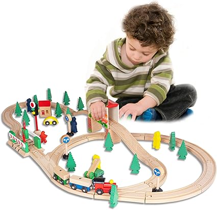 Amazon Com Sainsmart Jr Wooden Train Set For Toddler With Double Side Train Tracks Fits Brio Thomas Melissa And Doug Kids Wood Toy Train For 3 4 5 Year Old Boys And Girls Toys Games