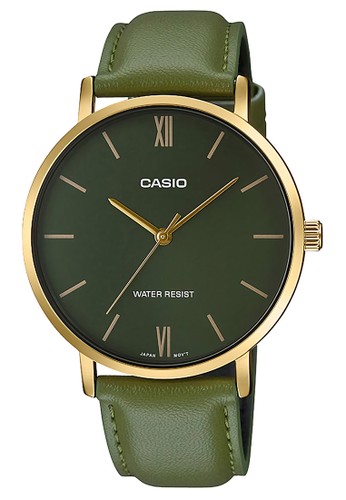 Jual Casio Casio Jam Tangan Pria Gold Green Leather Strap Mtp Vt01gl 3budf Original Zalora Indonesia