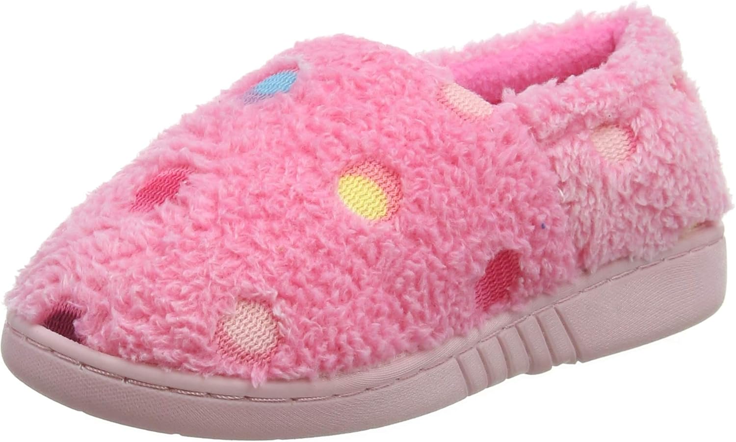 Toddler Girls Slippers Size 2 Pink With White Polka Dot Soft Faux Fur Ebay