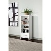 White media tower. Each window-paned door slides open to showcase versatile interior. Find entertainment centers to store and display every type of media. 3 fixed shelves and 5 adjustable shelves combine to create unlimited storage options for your media.