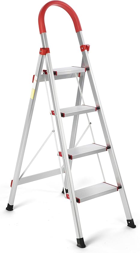 Amazon Com Hynawin 4 Step Ladders Multi Purpose Portable Aluminum Home Ladder Tool Equipment For Indoor Outdoor With Wide Platform Steps 330 Lbs Load Capacity Lightweight Ladder Home Kitchen