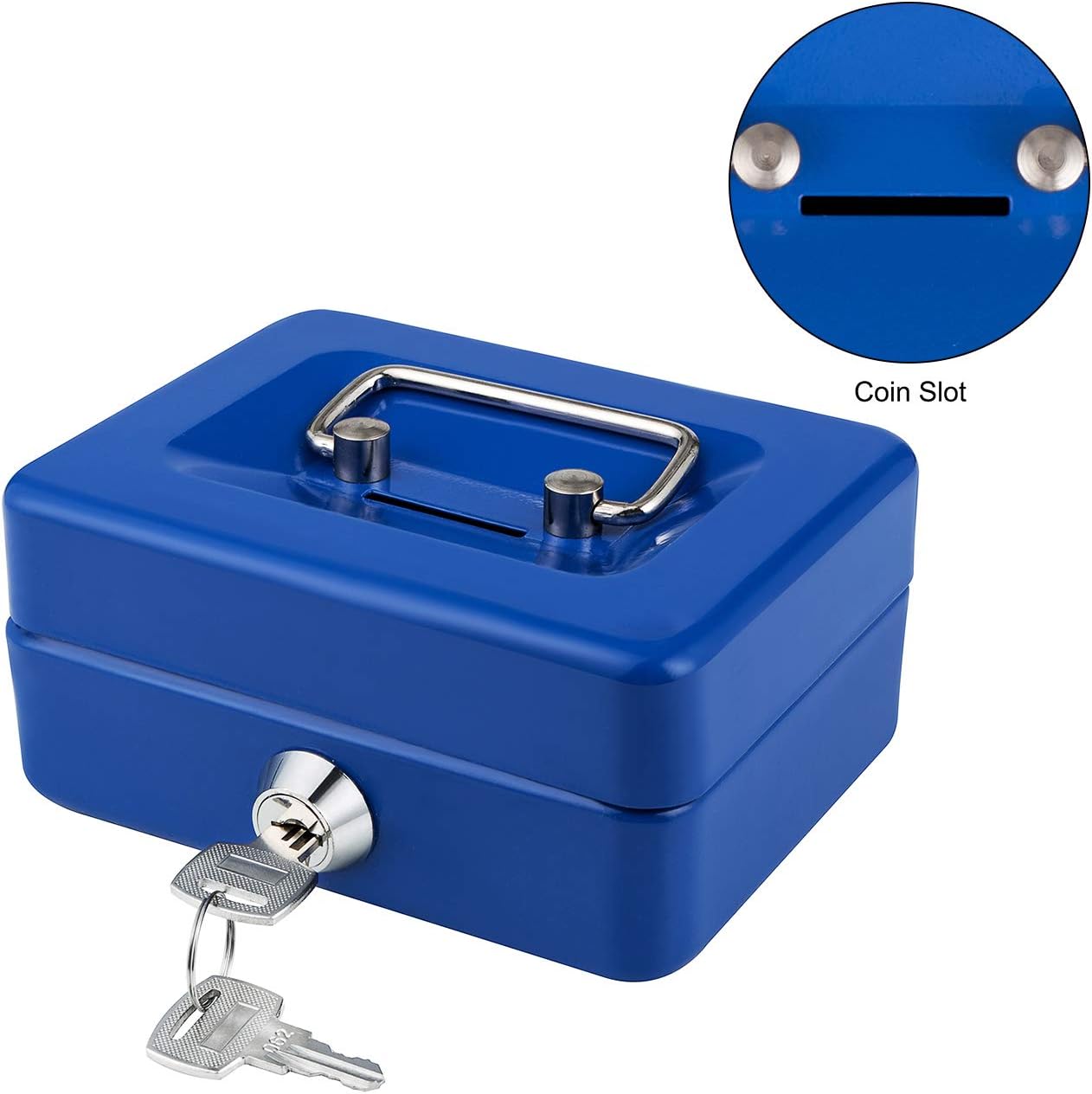 Amazon Com Cash Box With Lock And Slot For Kids Small Cash Box With Money Tray Metal Piggy Bank Safe Box 4 9 X 3 7 X 2 4 Blue Office Products