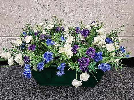 Outdoor Artificial Plant White Purple And Blue Flowers Pot And Bark Amazon Co Uk Garden Outdoors