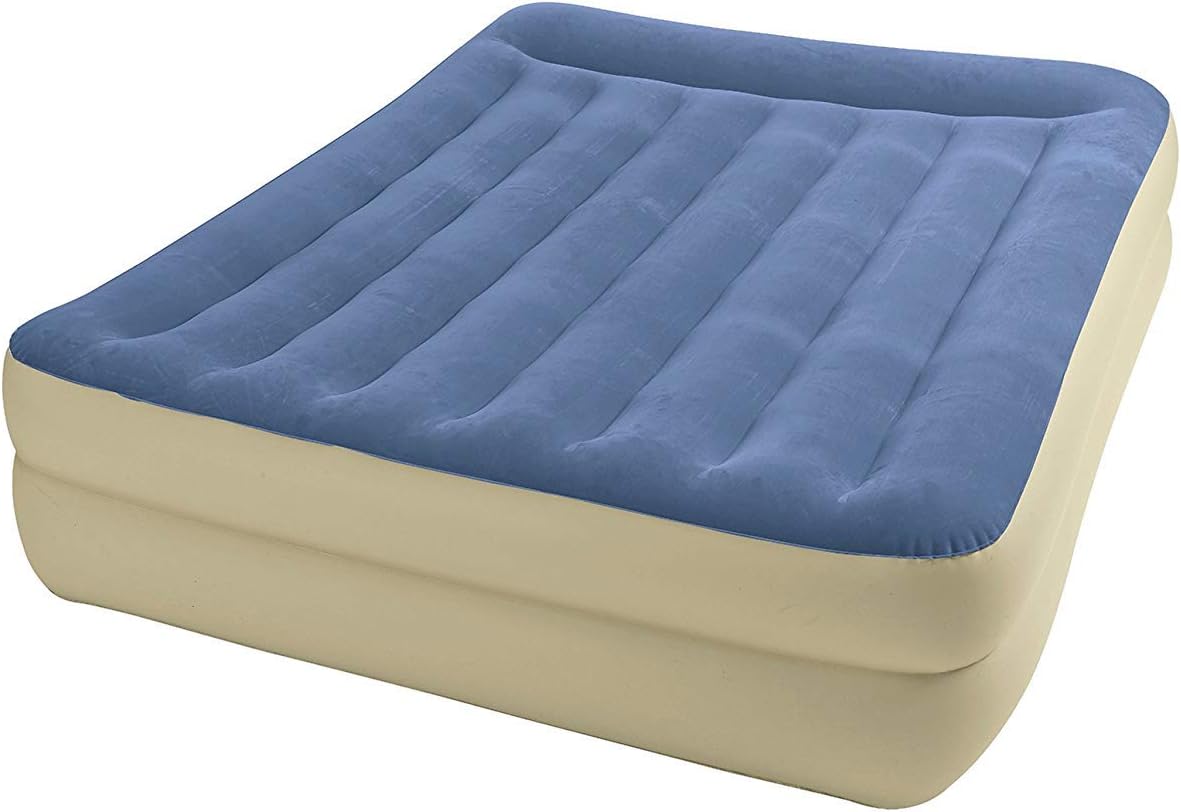 Intex pillow rest raised airbed. Built-in electric pump provides quick inflation and deflation for convenience. Queen sized air mattress with flocked pillow rest top and built in pump Constructed with lightweight. Product description This Intex Queen Deluxe Pillow Rest Fiber-Tech Raised Airbed from Intex provides the comfort of a traditional spring mattress.