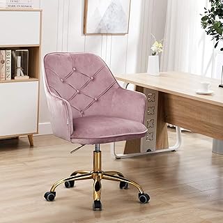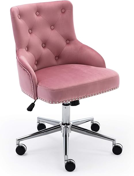 Amazon Com Blairot Home Office Desk Chair With Mid Back Modern Tufted Velvet Fabric Computer Chair Swivel Height Adjustable Accent Chair With Wheels And Metal Base With Arms For Study Living Bedroom Pink Mauve Kitchen
