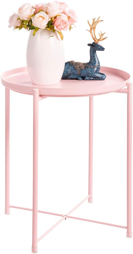 Amazon Com Hollyhome Tray Metal End Table Sofa Table Small Round Side Tables Anti Rust And Waterproof Outdoor Indoor Snack Table Accent Coffee Table H 20 28 X D 16 38 Pink Kitchen Dining