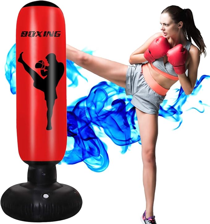 Amazon Com Inflatable Free Standing Punching Bag Heavy Training Bag Adults Teenage Fitness Sport Stress Relief Boxing Target Black Sports Outdoors
